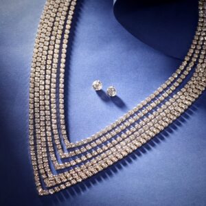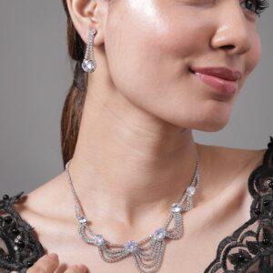 Rhodium Plated Cascading Multiple Strands AD & Cubic Zirconia Studded Necklace Set – Silver