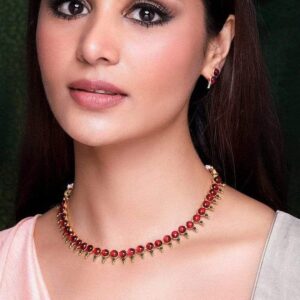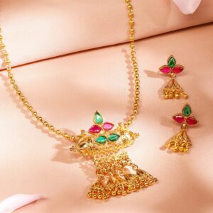22KT Gold Plated Brass Red Stone Studded Necklace Set – Green
