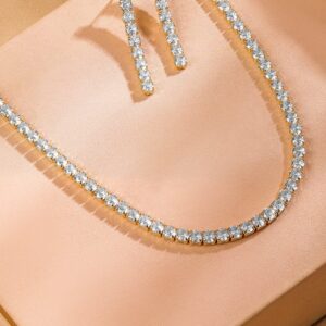 18K Gold Plated White Cubic Zirconia Tennis Necklace & Earrings Set – Gold