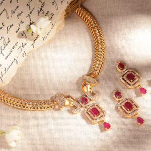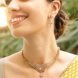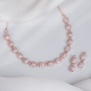 Rose Gold Plated Zirconia Stone Studded Handcrafted Necklace Set. – Rose Gold