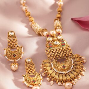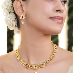 22K Gold Plated Studded Teample Necklace Set – Gold