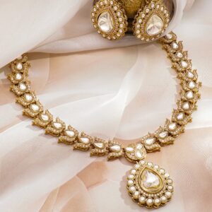 Gold Plated Kundan Delicate Necklace Set – Gold