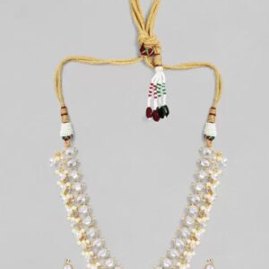 18K Gold-Plated White Kundan Choker Necklace Set With White Beads And Pearls – Gold