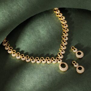Gold Plated White Stone Studded American Diamond Necklace Set. – Silver
