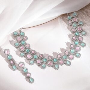 Rhodium-Plated Pastel Pink AD & Cubic Zirconia Studded Necklace Set – Pastel Pink