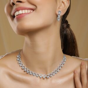 Rhodium Plated Cubic Zirconia Studded Jewellery Set – Silver