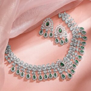 Rhodium Plated Emerald & Cubic Zirconia Studded Premium Jewellery Set – Gold