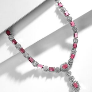 Rhodium-Plated Ruby Red and White Cubic Zirconia Studded Statement Necklace Set – Silver