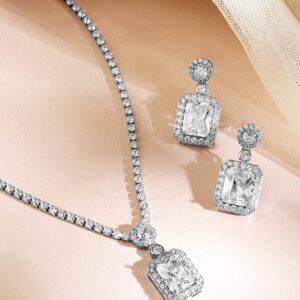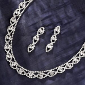 Rhodium-Plated Cubic Zirconia Studded Necklace and Earrings – Silver