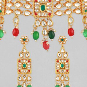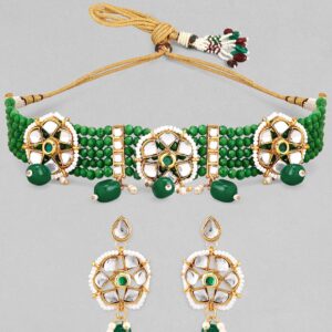 Gold-Toned White Kundan-Studded Green Beaded Jewellery Set – Gold