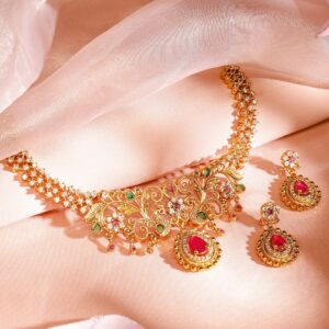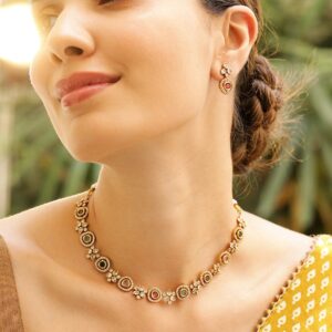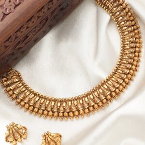 22K Gold Plated Studded Teample Necklace Set – Gold