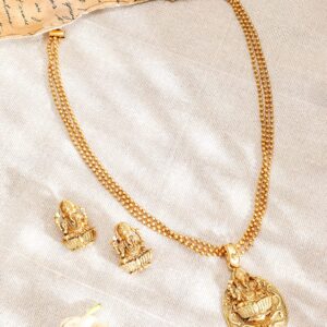 22K Gold-Plated Divine Ganesh Motif Necklace Set with Textured Traditional Chain – Gold