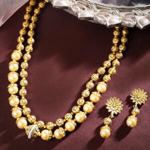 Cream Pearl & Crystal Beaded Classy Necklace Set – Cream