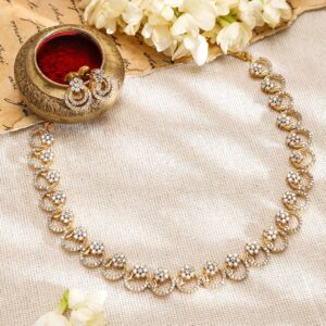 Gold Plated White Stone Studded American Diamond Necklace Set. – Gold