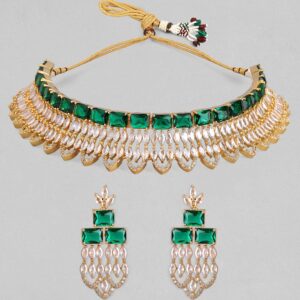 Rhodium-Plated Emerald Green & White Cubic Zirconia Studded Choker Jewellery Set for Women