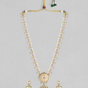 Gold Plated Handcrafted Beaded Kundan Studded Multicolour Necklace Set – White