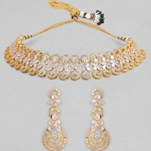 22K Gold-Plated White Cubic Zirconia Studded Elegant Necklace Set with Earrings – Gold