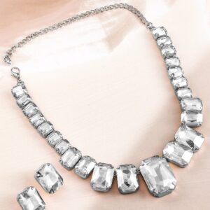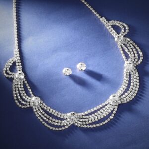 Rhodium-Plated White Cubic Zirconia Studded Statement Necklace Set – Silver