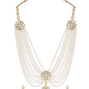 Luminous Elegance White Pearl Kundan Necklace Set – Gold