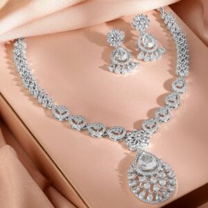 Silver-Plated Cubic Zirconia Studded Premium Jewellery Set – Silver