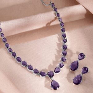 Rhodium-Plated Purple Sapphire & Cubic Zirconia Studded Premium Necklace Set