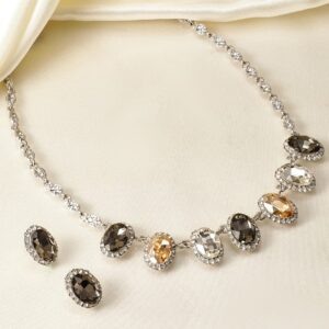 Rhodium-Plated Stone-Studded Jewellery Set – Silver