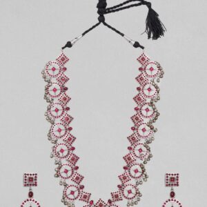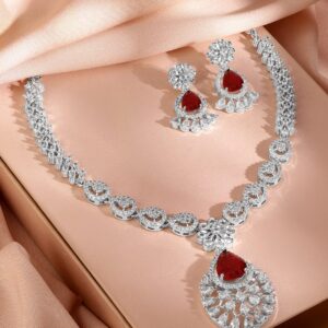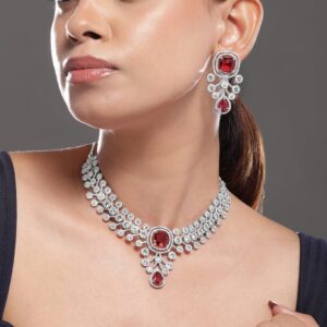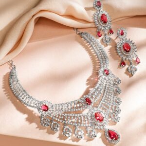 Rhodium-Plated Ruby Red AD & Cubic Zirconia Studded Necklace Set – Ruby Red