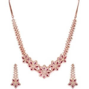 Rose Gold Plated Zirconia Stone Studded Handcrafted Necklace Set. – Rose Gold