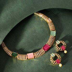 Elegant Golden AD Necklace Set – Multi Color