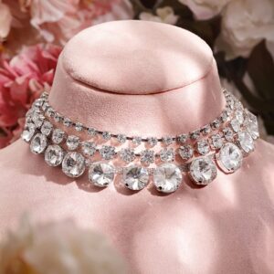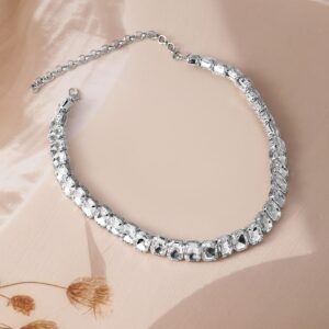 Rhodium Plated Crystal AD & Zirconia Studded Luxurious Choker Necklace – Silver