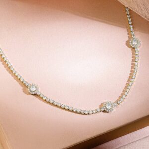 22K Gold-Plated Cubic Zirconia Studded Floral Charm Tennis Necklace