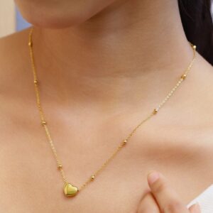 18K Gold-Plated Stainless Steel TarnishFree Waterproof Heart & Pearl Charm Necklace – Gold