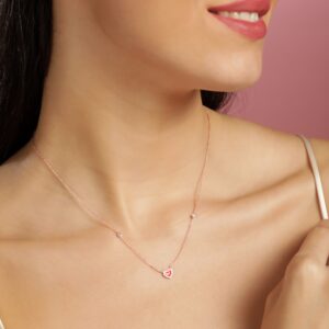 925 Silver 18K Rose Gold Plated Red Heart Studded Charm Necklace – Rose Gold