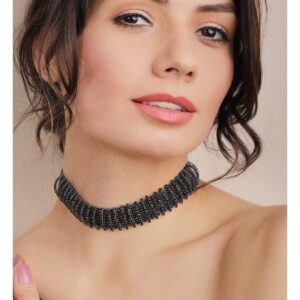 Rhodium Plated Black Oxidized Rhinestone Studded Statement Choker Necklace
