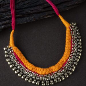 Oxidised Silver-Toned Orange Kerala Choker Necklace – Multicolor