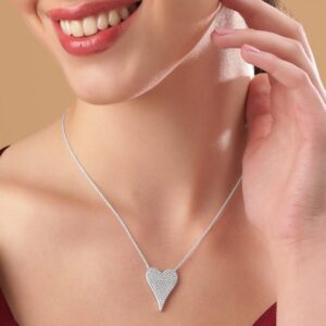 Rhodium-Plated Stainless Steel TarnishFree Waterproof Zirconia Heart Charm Necklace – Silver