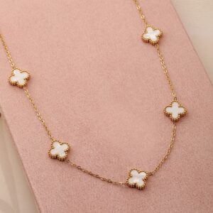 18K Gold-Plated Stainless Steel Tarnish-Free Waterproof Multicolor Clover Necklace – Gold