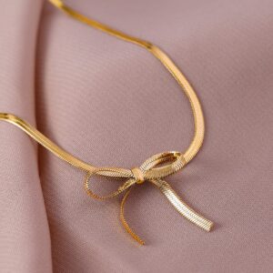 18K Gold-Plated Stainless-Steel Tarnish-Free Waterproof Bow Pendant Necklace – Gold