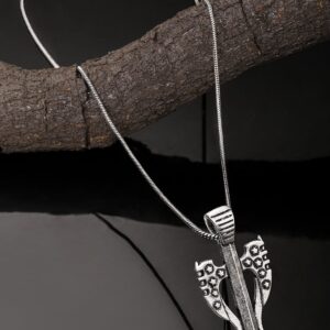 Roadster Men Silver-Toned Brass Tribal Trishul Pendant with Chain