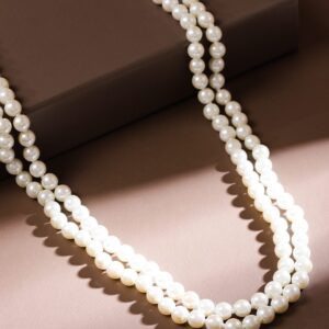 Glossy White Pearl Multi Layered Necklace Statement Jewelry – White