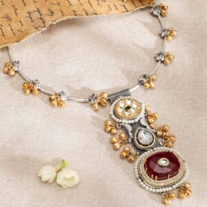 Oxidised Silver Metal Kerela Necklace – Gold & Silver