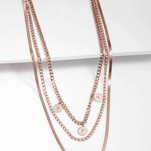 Rose Gold Plated Coin Pendant Multi Layered Necklace And Chains
