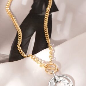 18K Gold-Plated Dual Tone Gold and Silver Statement Long Chain Necklace