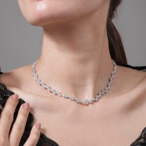 Rhodium Plated Crystal AD & Cubic Zirconia Studded Luxurious Choker Necklace – Silver