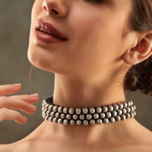 Oxidized Silver Plated Statement Choker Necklace – Silver