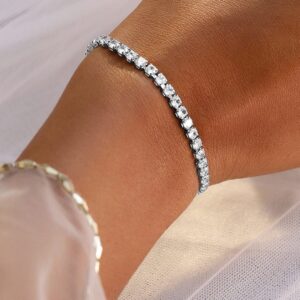 18K Gold Plated Cubic Zirconia Studded Statement Tennis Bracelet – Silver