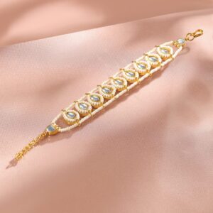 22K Gold Plated Kundan & Pearl Handcrafted Adjustable Bracelet for Traditional Look – Gold