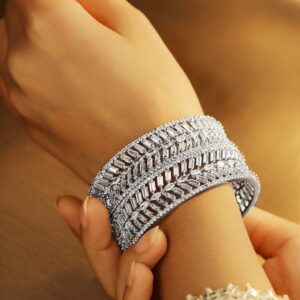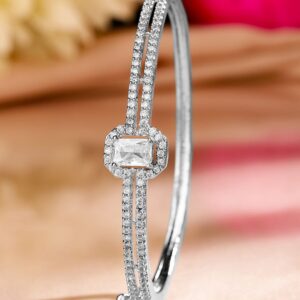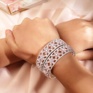 Set of 2 Rhodium Plated Premium Quality White AD & Cubic Zirconia Studded Bangles – 02-Aug