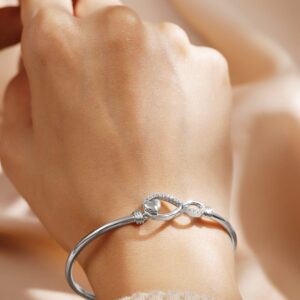 Rhodium-Plated Infinity & Heart Motif Crystal Zirconia Studded Sleek Bracelet – Silver