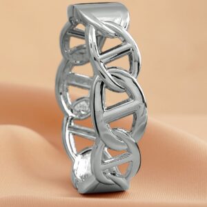 Rhodium-Plated AAA Cubic Zirconia Studded Demi-Fine Openable Bracelet in Silver Tone for Women